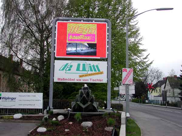 Machen Sie Ihren alten Pylon zum digitalen Blickfang! Wir integrieren Videowände für bestehende Werbepylone kosteneffizient nach. Sie sparen sich die hohen Kosten und den bürokratischen Aufwand einer kompletten Neuerrichtung. Stattdessen nutzen wir die vorhandene Substanz und werten sie technisch auf „State of the Art“-Niveau auf.