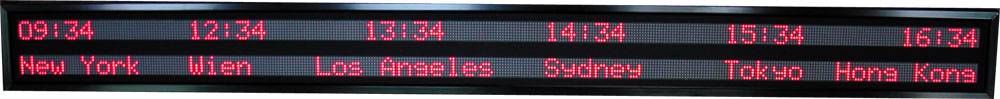 - Auftrag: Zweizeilige LED-Anzeige der Serie Proline, Modell PL50/2/60r mit der Sonderfunktion einer Weltzeituhr für zehn Firmenstandorte