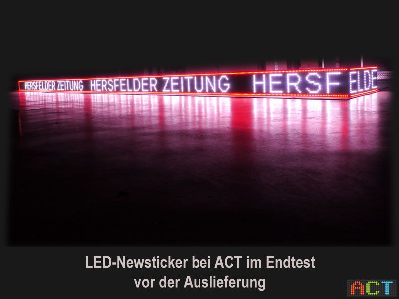 Vor der Beauftragung und Produktion überzeugte sich eine Delegation der Hersfelder Zeitung inklusive Geschäftsführer, Herrn Markus Pfromm bei einem Besuch bei ACT im Werk Wien-Zwölfaxing über Qualität und Design der von ACT produzierten LED-Newsticker. Auch die Ansteuerung der Displays wurde damals bereits im Detail besprochen.