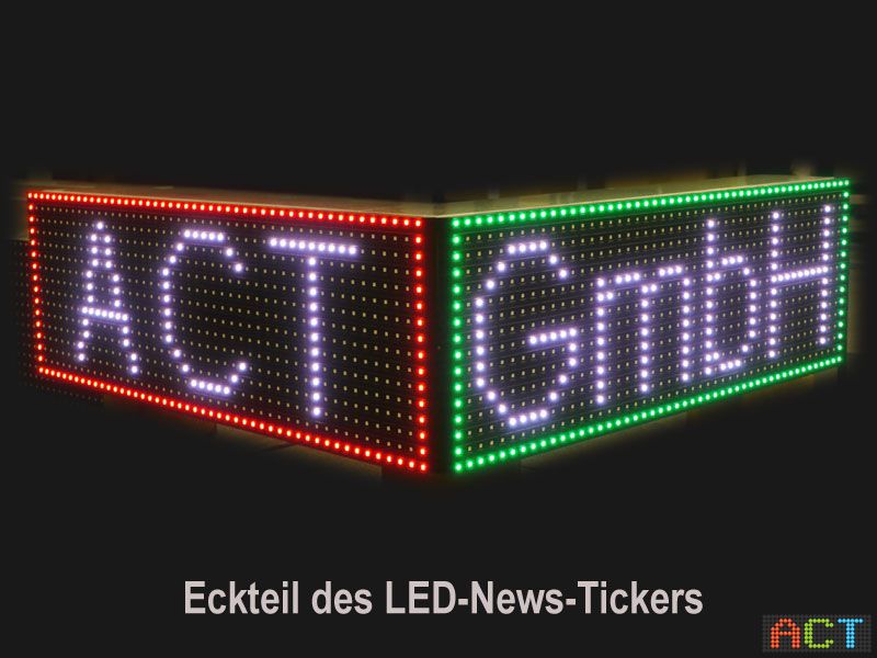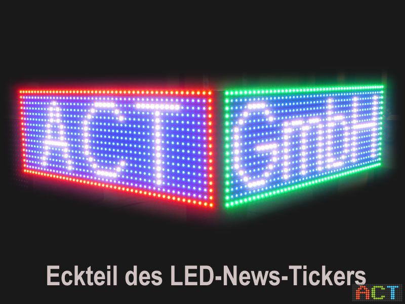 - Auftrag: 15,6 m langer LED-Newsticker, um die Ecke laufend, vollfarbig, Online-Ansteuerung