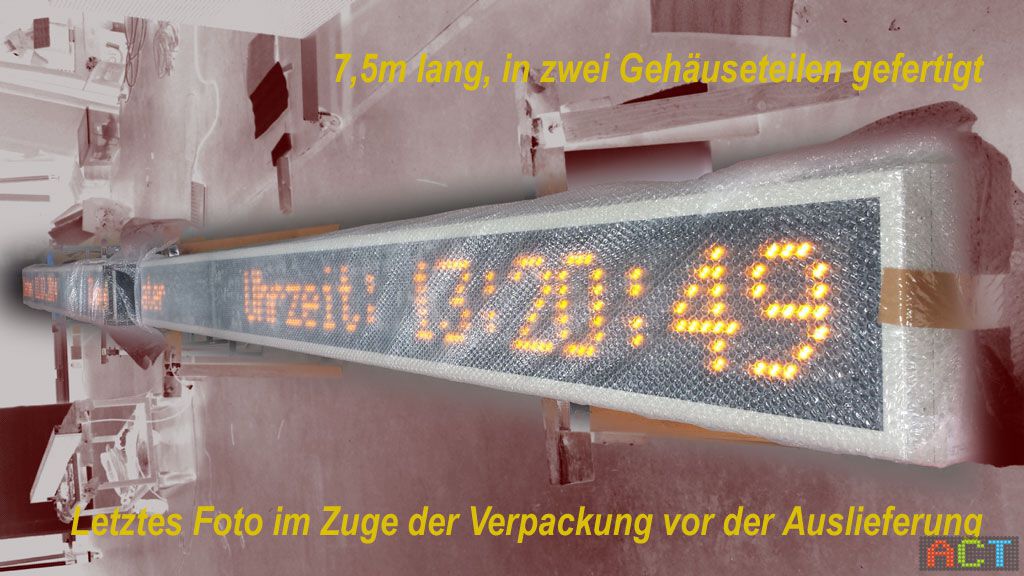 - Laufschriftanzeige für den Außenbereich mit einer Gesamtlänge von 7,5 Meter