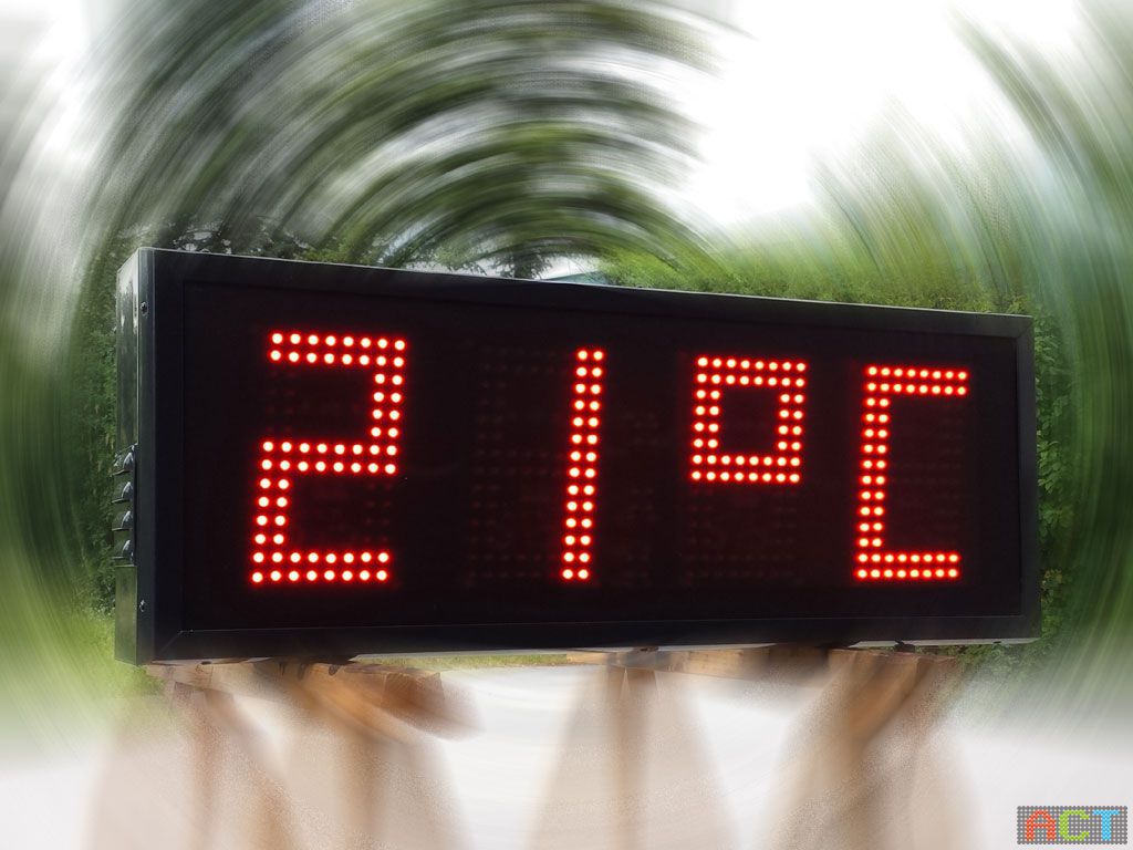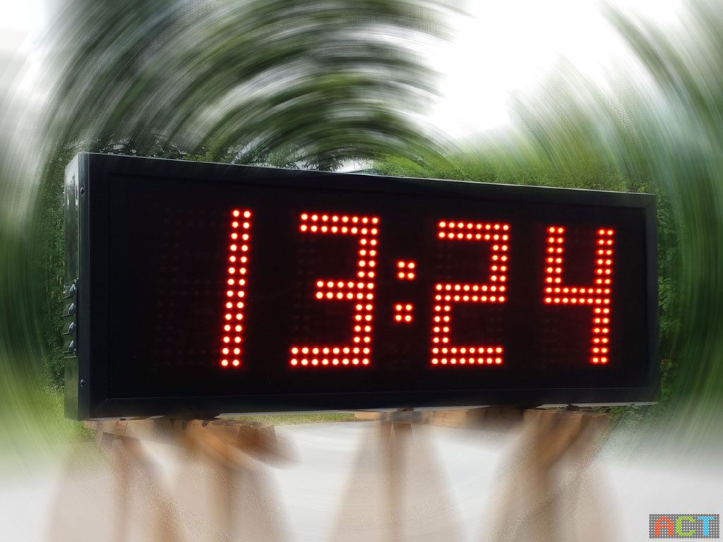 Im Sommerhitze und im bitterkalten Winter, die LED-Zeitanzeige muss einiges aushalten. ACT baut diese LED-Displays daher mit doppelwandigen Alu-Profilen, welche in Wunschfarbe pulverbeschichtet werden können. Eine vier Millimeter starke, satinierte Frontscheibe befindet sich frontseitig über den Leuchtdioden. Doppelseitige Displays haben eine Bautiefe von 180 mm. Seitlich befinden sich Hochleistungslüfter, welche sich bei hohen Temperaturen automatisch einschalten. Eine in dieser Bauform von ACT hergestellte LED-Zeitanzeige ist wartungsfrei und für den Dauereinsatz gebaut.