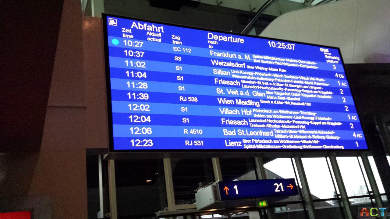 Fahrplan-Anzeigetafel Bahnhof Klagenfurt SMD-Videowand