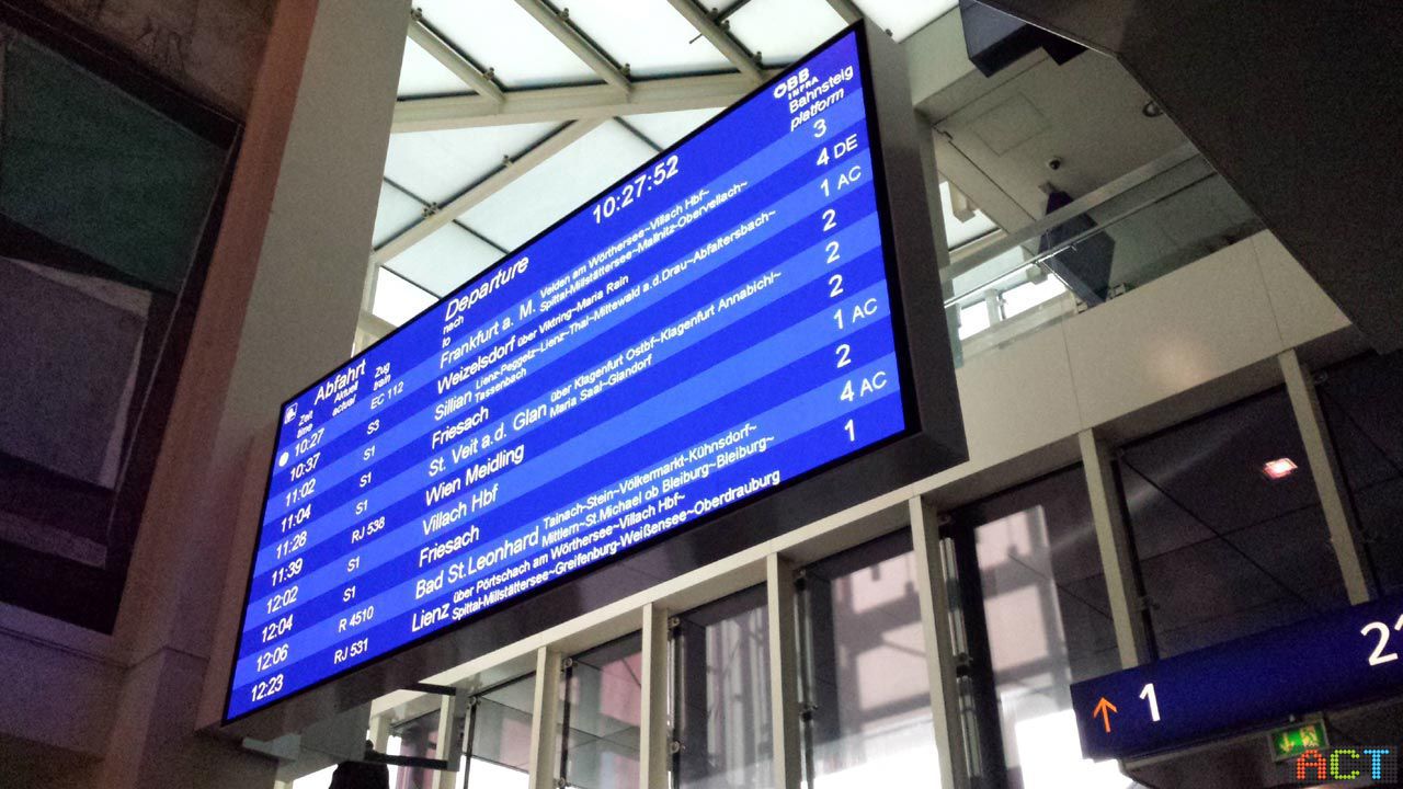 Die Österreichischen Bundesbahnen entschlossen sich zu einer Ausschreibung für eine neue Hauptanzeigetafel in modernster LED-Technik. Businesspartner Kapsch BusinessComAG gewann diese Ausschreibung mit einer High-End SMD Indoor Videowand aus dem Hause ACT.