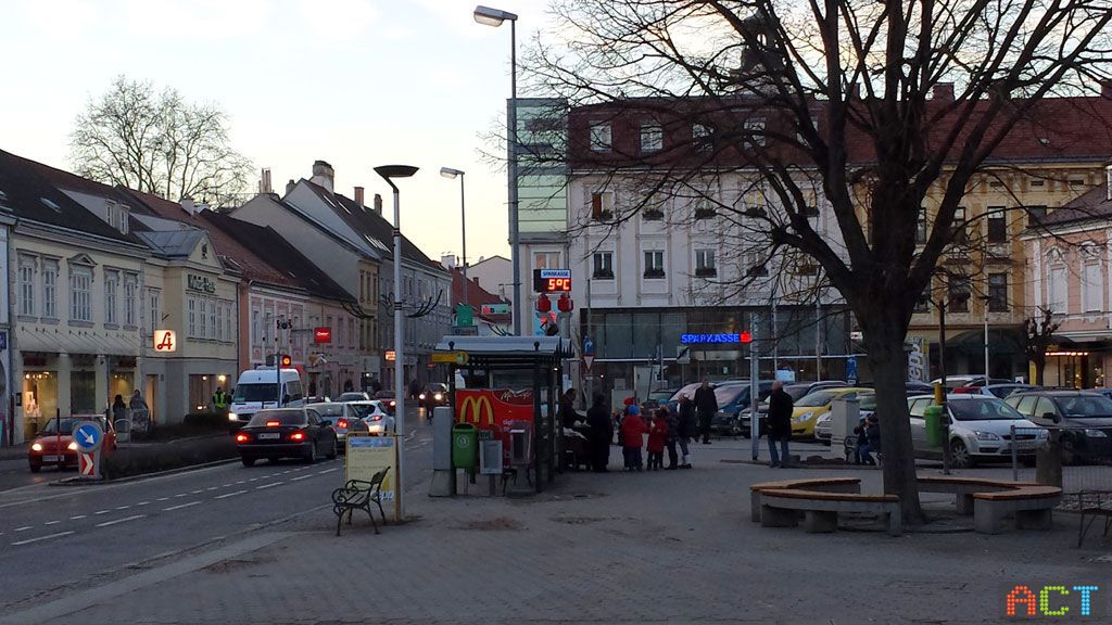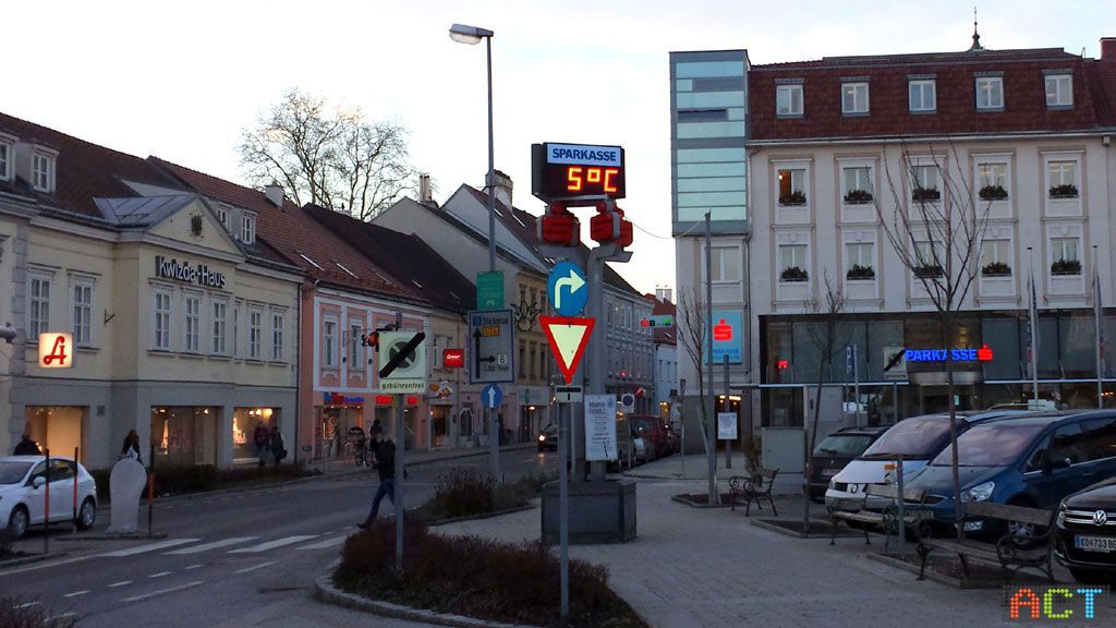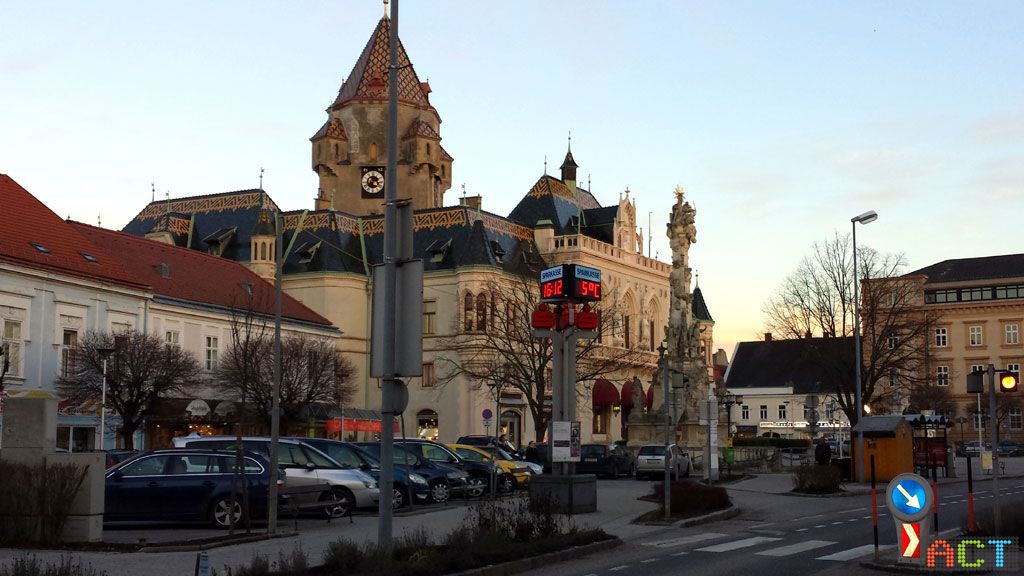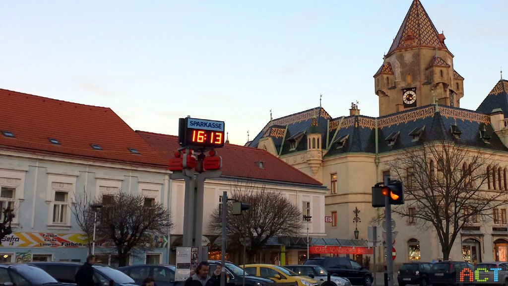 Am Hauptplatz in Korneuburg informiert die dreiseitige LED-Ziffernanzeige