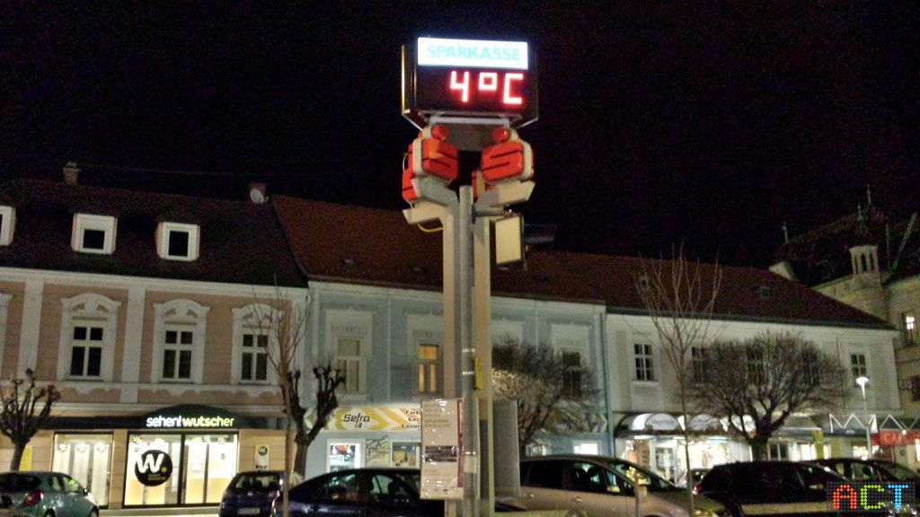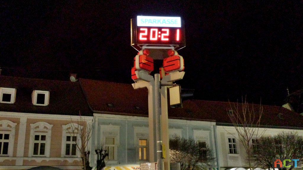 Das interessiert jeden, auch wenn die Uhrzeit am Handgelenk abgelesen werden kann, auf die große LED-Ziffernanzeige schaut einfach jeder. Schon von weitem sieht man sie am Hauptplatz. Die Uhrzeit geht absolut exakt, darauf kann man sich verlassen, da die LED-Anzeige über Satellit die Daten empfängt. Damit ist auch eine automatische Sommer / Winterzeit Umstellung gewährleistet.
