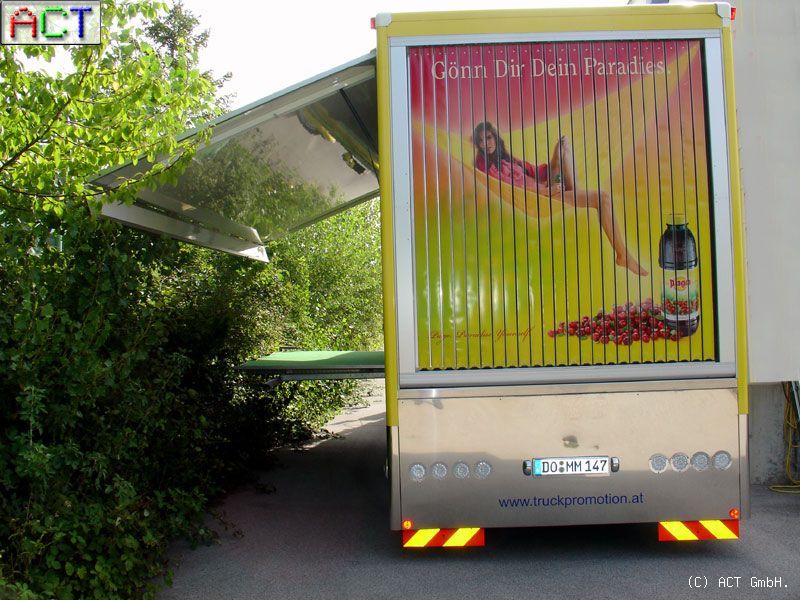 Seit dem Jahr 2003 verwirklicht ACT verschiedene Projekte für mm Promotion, wie zum Beispiel sechs senkrechte Videowand-Streifen je 1,9 m lang in eine Container-Wand eingebaut und LED-Displays, teilweise mit Prismenwendern seitlich und rückseitig für einige Showtrucks der Extraklasse.