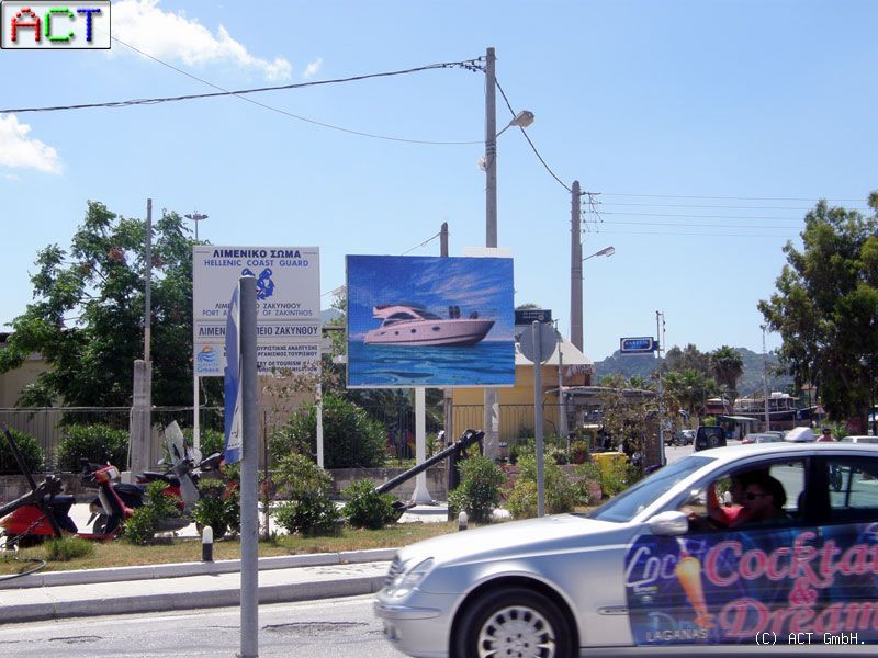 Auf Zakynthos, Griechenlands drittgrößter Insel installierte ACT im Hafen eine Videowand der neuesten Generation. Die LED-Videowand präsentiert Einwohnern und Touristen einen Mix aus Nachrichten und Werbung. Die Vermarktung der Werbefläche auf der LED-Videowand erfolgt über eine lokale Firma.