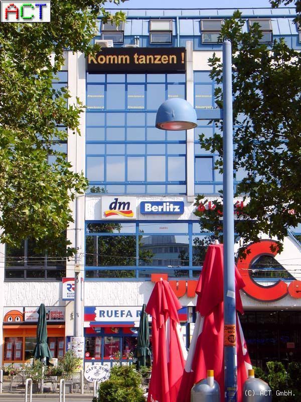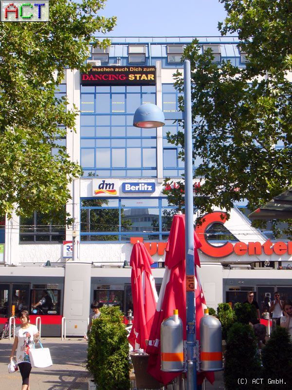 Mit dem System ACT-Video-LED RP22RG stehen der Tanzschule Kreuzenstein für die Außenwerbung 65.536 brillante Farben aus dem RG-Bereich zur Verfügung. Enorme Helligkeit, perfekter Kontrast und optimale seitliche Lesbarkeit, auch bei direkter Sonneneinstrahlung sind die Markenzeichen dieser LED-Anzeigetafel. Dank eines sehr sensiblen Dimmers wird die Helligkeit der Leuchtdioden der Umgebungshelligkeit laufend angeglichen, so dass eine Blendung selbst in der Nacht ausgeschlossen ist. Ein Novum für diesen Anzeigetyp ist die frontseitige Wartung dank partiell nach oben schwenkbaren Modulfronten. In Summe wurde die LED-Wand mit 31.104 High-Quality-Leuchtdioden bestückt.