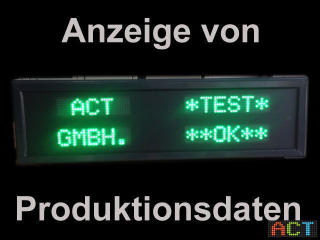 ACT liefert hierfür das umfangreiche Ansteuerungsprotokoll gemeinsam mit dem LED-Display. Die Steuerbefehle konnten so in die vorhandene Software eingebunden werden, damit werden die gewünschten Daten vollautomatisiert am LED-Industrie-Textdisplay angezeigt. Die LED-Anzeige wurde über Netzwerkadapter ins vorhandene Netzwerk integriert.