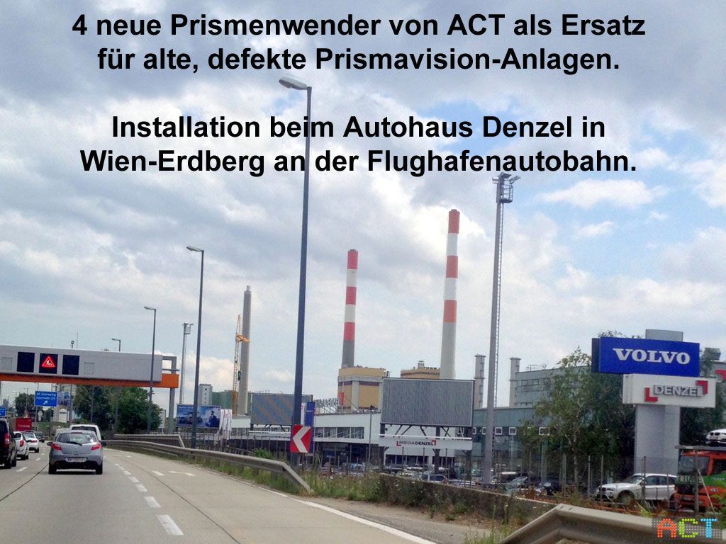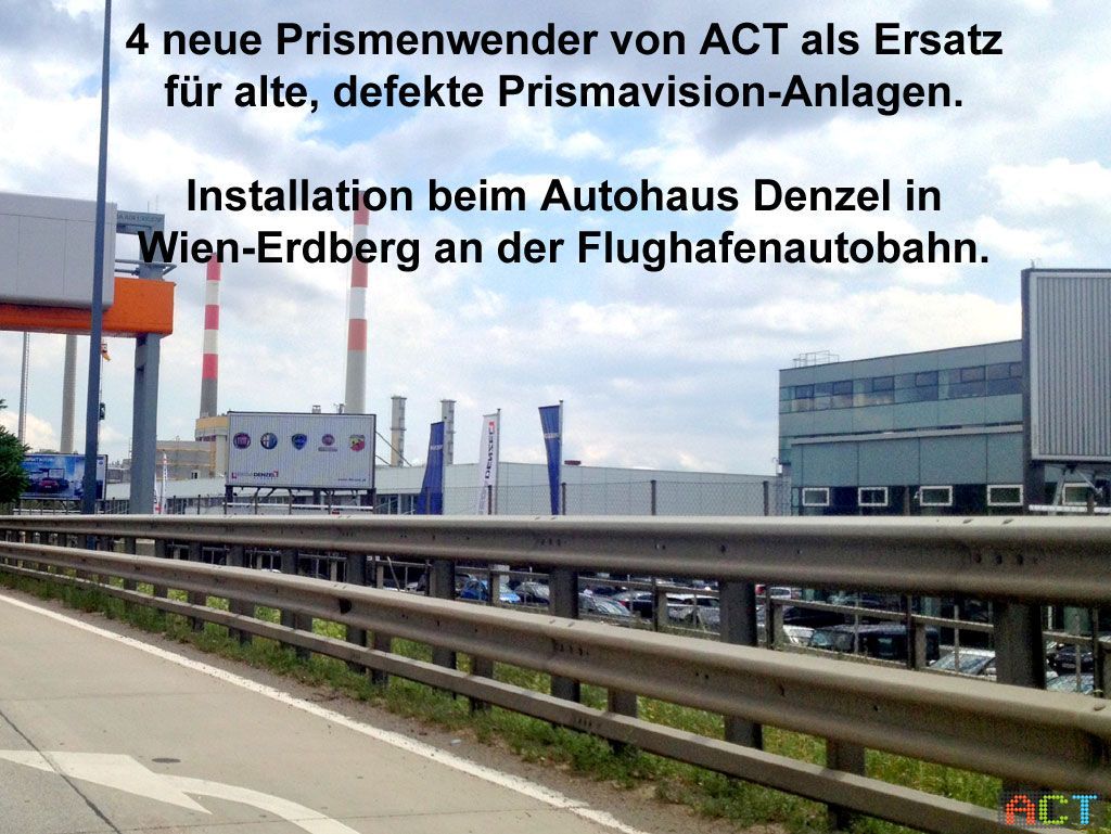 Die vier neue Prismenwender Version Quick-Shift lieferte ACT über einen Vertriebspartner an die Firma Denzel für die Filiale in Wien-Erdberg. Dort waren Anlagen des Herstellers Prismavision installiert, welche aufgrund laufender Reparaturen nicht mehr rentabel waren. Die alten Prismenwender wurden demontiert und entsorgt. Ersetzt wurden Sie durch moderne von ACT gelieferte Prismenwender Version Quick-Shift.