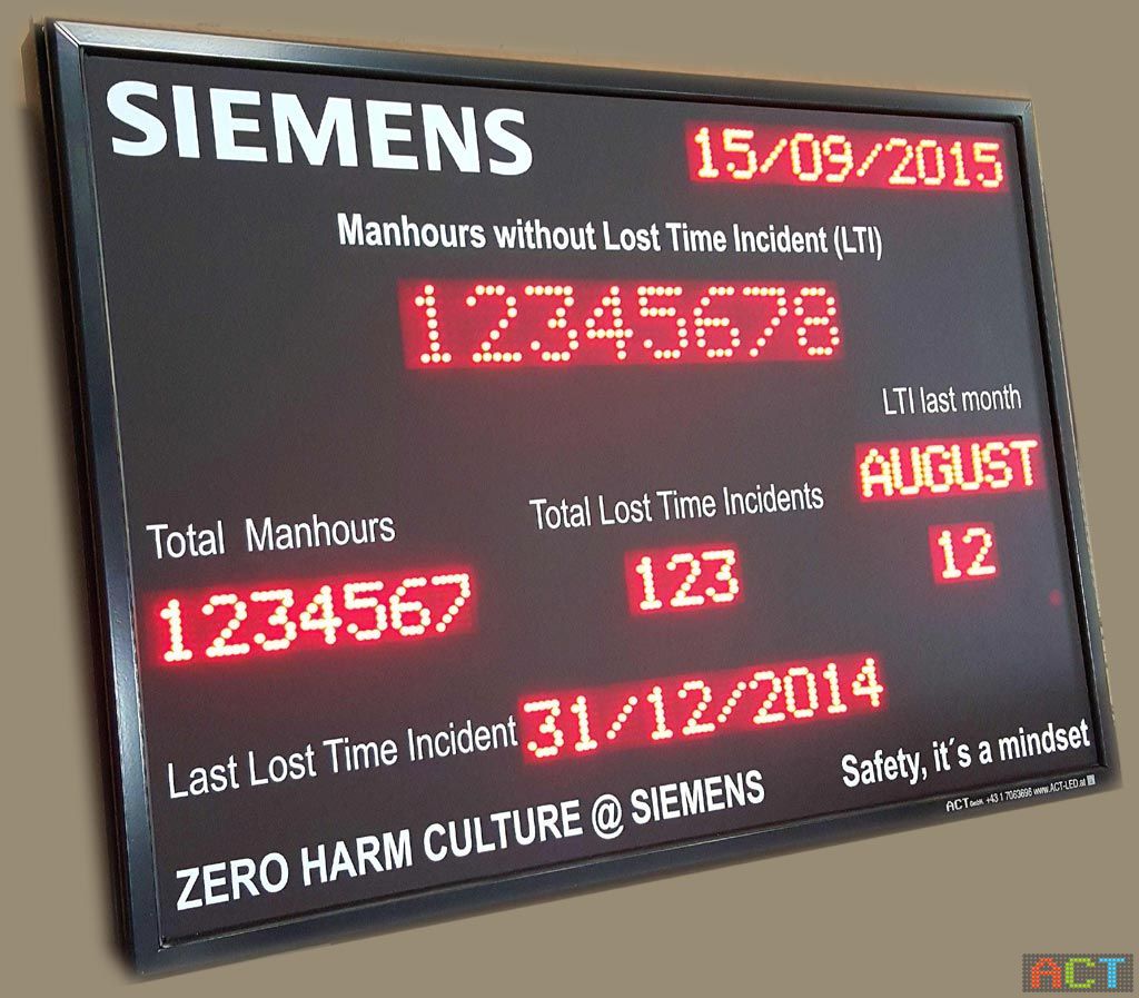 ACT produziert seit über zwei Jahrzehnten LED-Displays für industrielle Anwendungen. War eine Arbeitschutzanzeige vor 20 Jahren noch äußerst selten und ungewöhnlich, so sind diese Unfallanzeigen mittlerweile in vielen Betrieben im Einsatz.