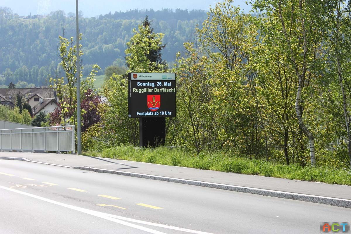 Das ideal Medium für den Außenbereich. Im Kompaktformat wird über aktuelle Veranstaltungen informiert und Werbung gut platziert. Was ist wann und wo los. Welche Veranstaltungen gibt´s nächste Woche, hat einer der örtlichen Wirtschaftstreibenden eine interessante Aktion? Über dieses und vieles mehr informiert seit Kurzem ein digitales Infosystem für Gemeinde Ruggell die Einwohner und Gäste schon direkt bei den Ortseinfahrten. Diese LED-Werbeanlagen kann man nicht übersehen. Die Videowände sind direkt neben der Straße positioniert, Bewohner und Urlauber fahren täglich vorbei und werden so auffällig und aktuell informiert.